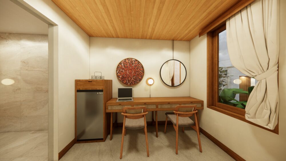 Perfect for families, this spacious suite offers a king-size bed plus additional twin beds, a separate living area, and a modern bathroom. Designed for comfort and privacy, it provides ample space to relax after a day of activities, ideal for an enjoyable and hassle-free family stay.